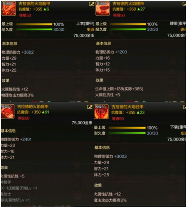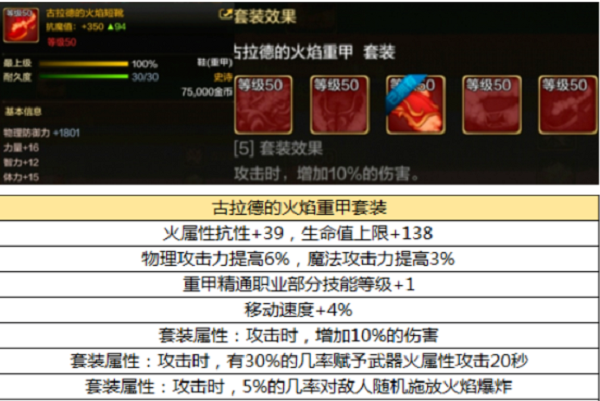 DNF韩服手游古拉德的火焰套装搭配属性介绍